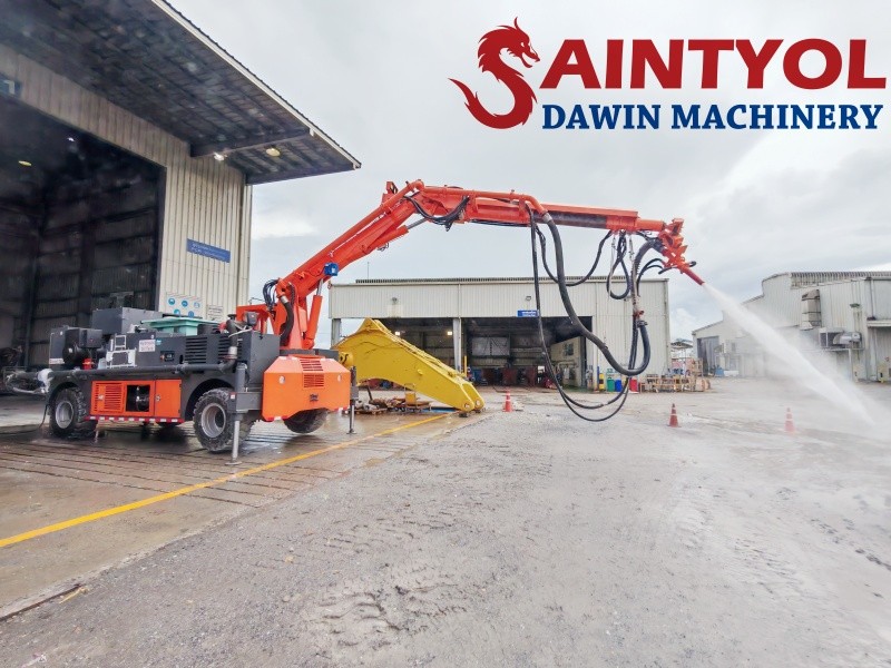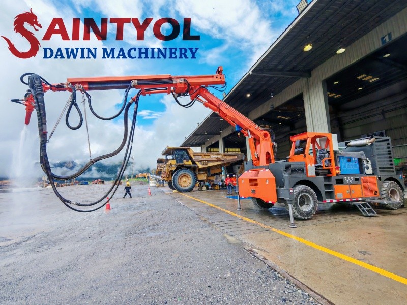 2. QKSP-20A: The "Production King" of High-Efficiency Construction Its core trump card is its maximum theoretical conveying capacity of 22m³/h—calculated based on conventional spraying thickness, it can complete nearly 300㎡ of work surface construction per hour, improving efficiency by over 30% compared to traditional equipment. A 10-meter vertical spraying height easily covers the tunnel arch, eliminating the need for scaffolding and saving 3-5 days of preparation time, reducing the risk of high-altitude operations by 90%. The hydrostatic drive system ensures rock-solid boom movement, with almost no vibration even under high-load operations. Combined with intelligent pressure control, the concrete compaction rate reaches 100%, completely eliminating the hassle of rework later. The machine's weight of 7500KG facilitates relocation, eliminating the need for large lifting equipment, and allowing for flexible scheduling even on mountainous construction sites. From its initial exploration in 2009 to its current global footprint, Saintyol DAWIN machinery has written an industry legend of transformation from catching up to leading in just over a decade. As the roar in the tunnel gradually subsides, and the smiles of the construction workers become more relaxed, you know this is Saintyol DAWIN Equipment's most inspiring achievement. Want to know the specific parameters of a particular wet spraying trolley? Want to get a customized construction solution? Feel free to leave a comment in the comment section or send us a private message. Saintyol DAWIN professional team is always ready to serve you!